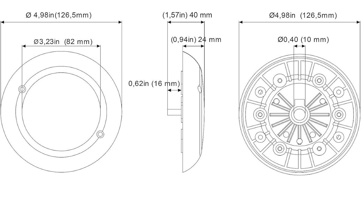 - Diametro esterno: 126,5 mm.