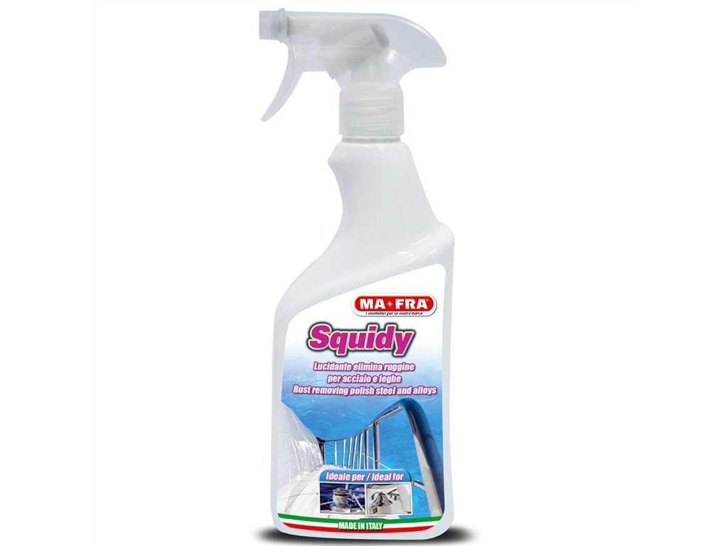 SQUIDY, grazie alla sua azione ad ampio spettro, rinnova e lucida le parti in acciaio e in lega esterne delle imbarcazioni come: tientibene, candelieri, scalette, roll-bar, liberando dall’ossido e ravvivando sia le parti opache che le parti cromate.