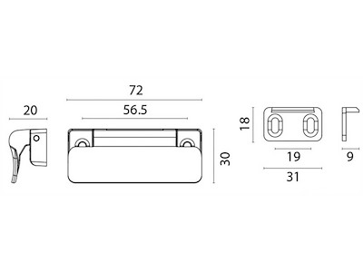 Dimensioni 72 x 30 x 20 mm.