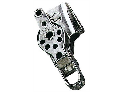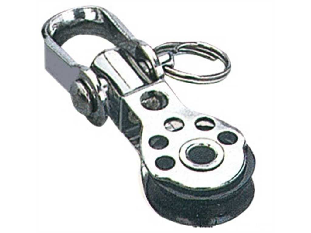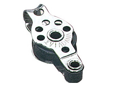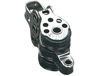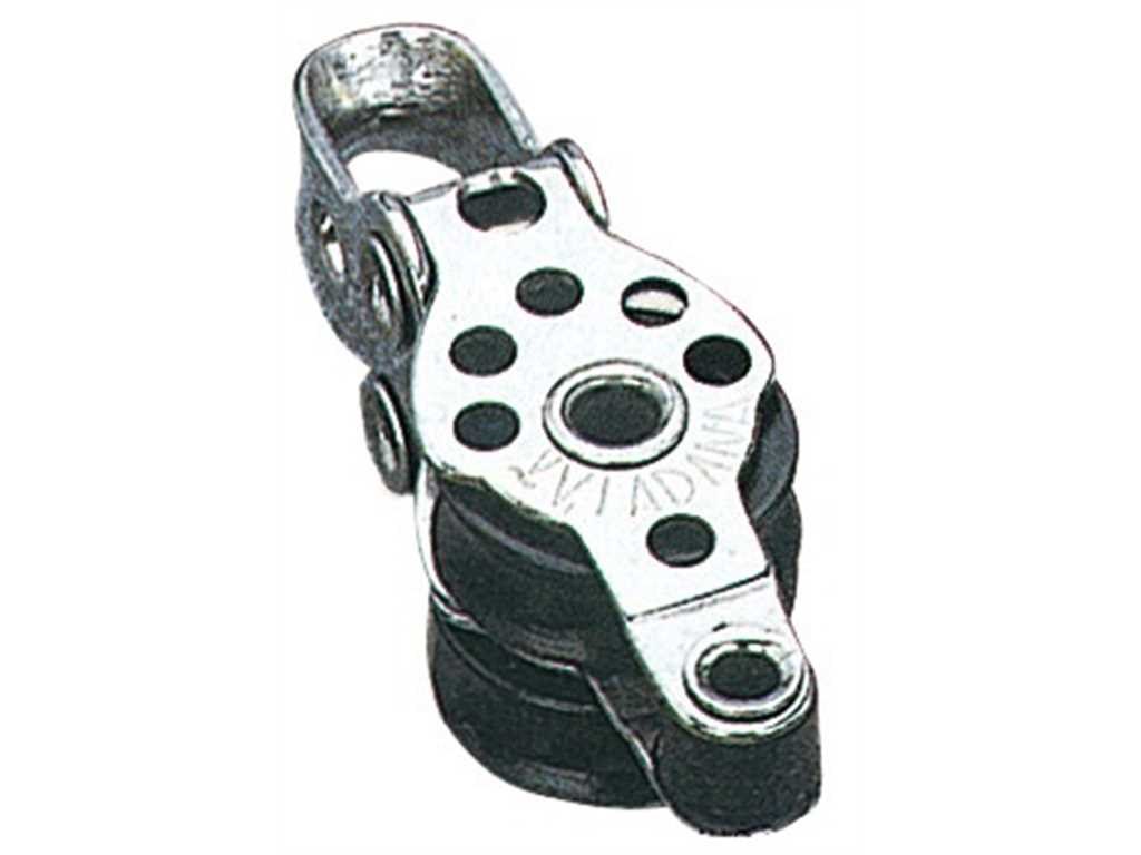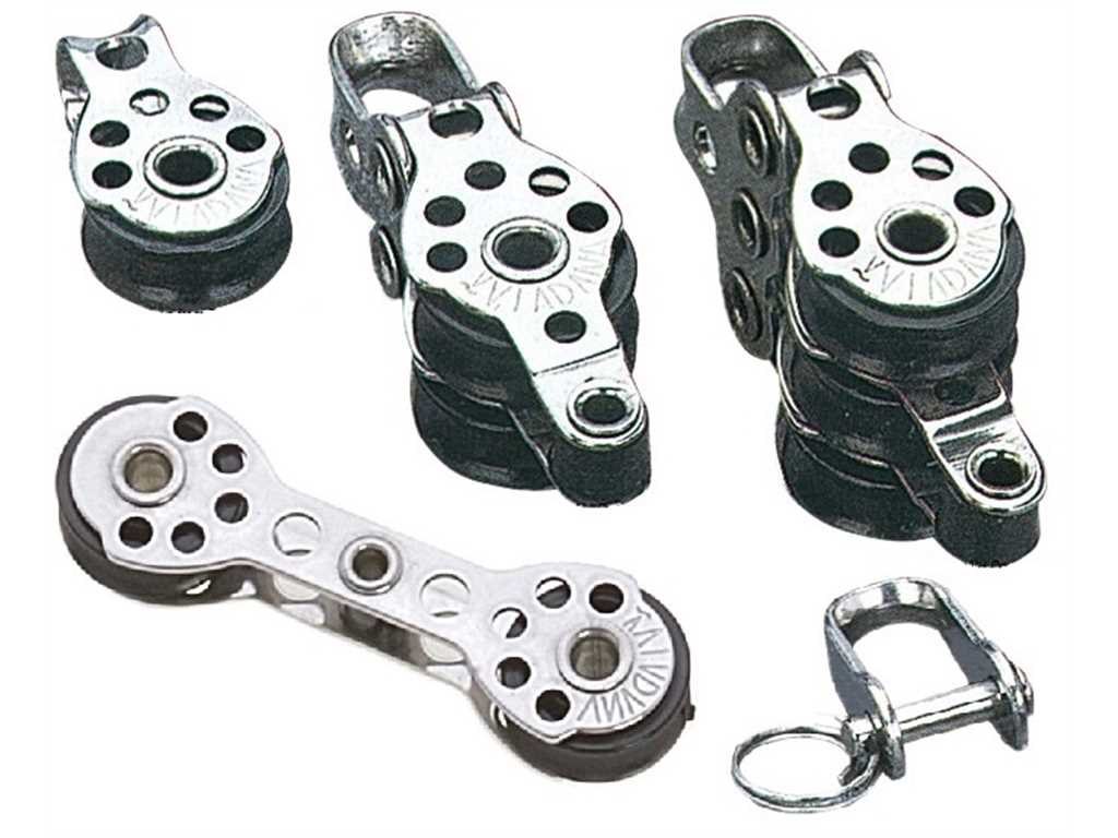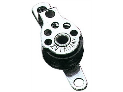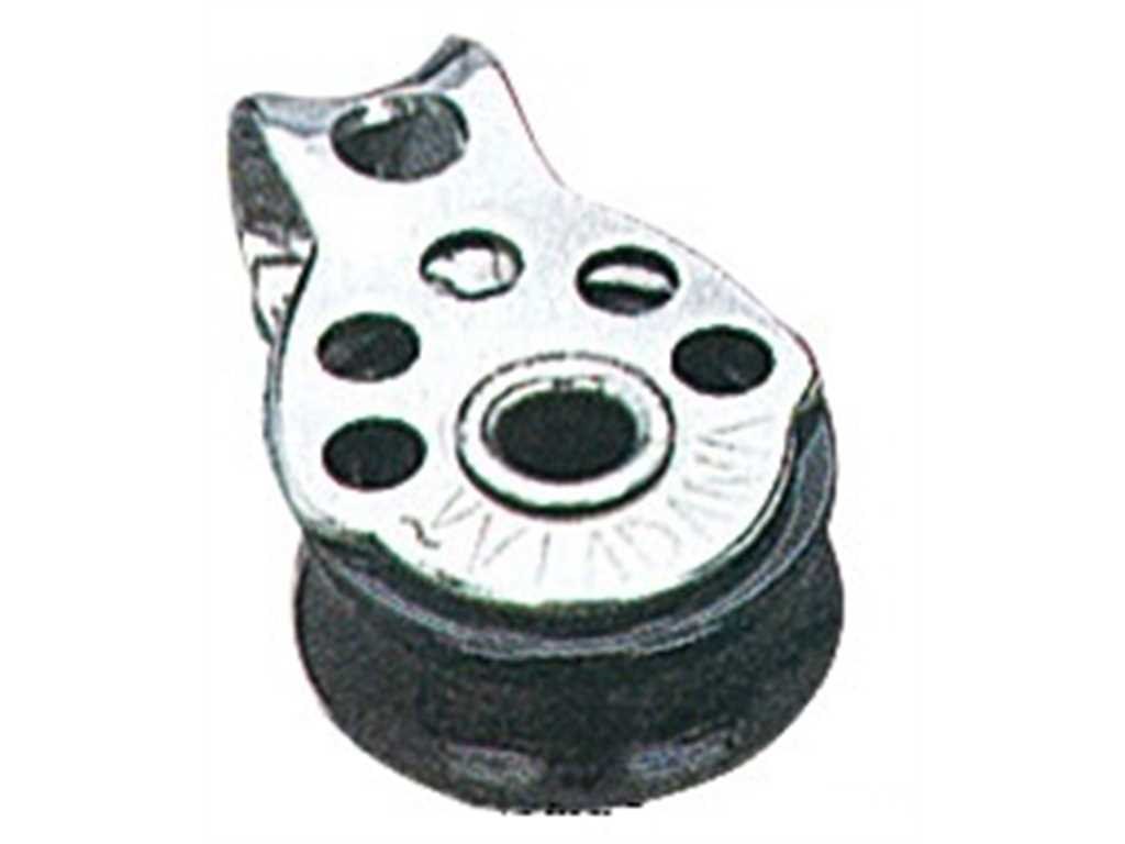Microbozzelli VIADANA per cime fino a 5 mm. . In acciaio inox con puleggia in nylon nero.