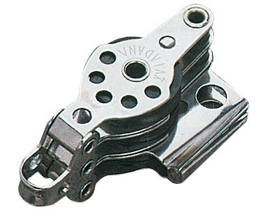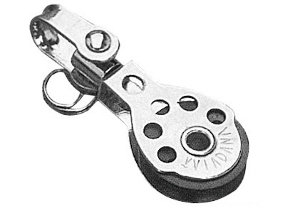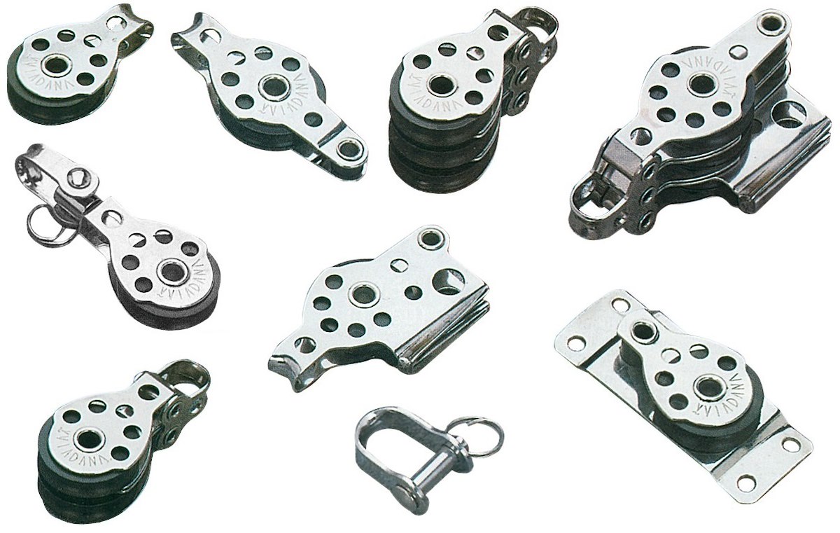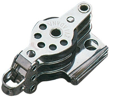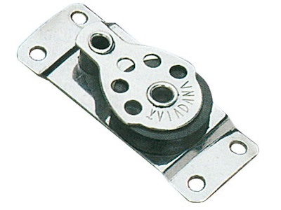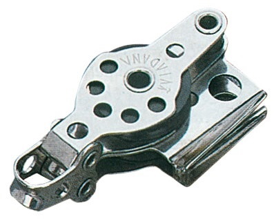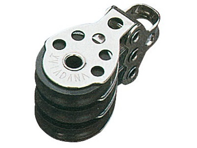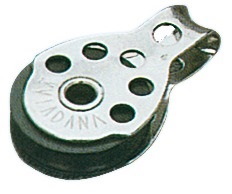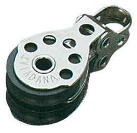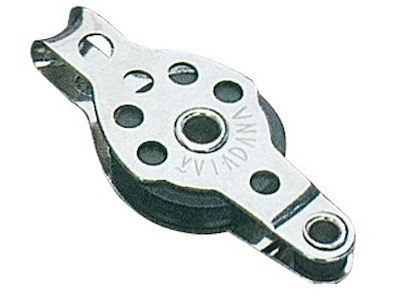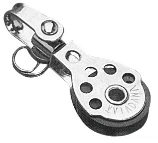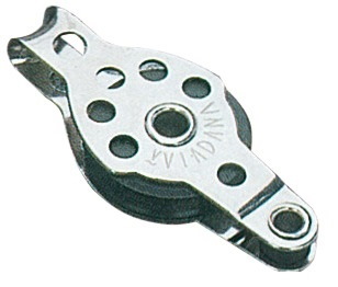 Microbozzelli VIADANA per cime fino a 6 mm. . In acciaio inox con puleggia in nylon nero.