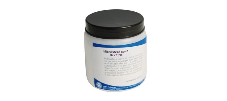 Le microsfere cave di vetro sono un additivo leggerissimo composto da sfere finissime di vetro cavo, ideale per alleggerire le resine e migliorare la lavorabilità degli stucchi. Vengono impiegate per dare corpo al composto senza aumentarne il peso, rendendole perfette per cordonature, stuccature e per colmature di grosse imperfezioni superficiali.