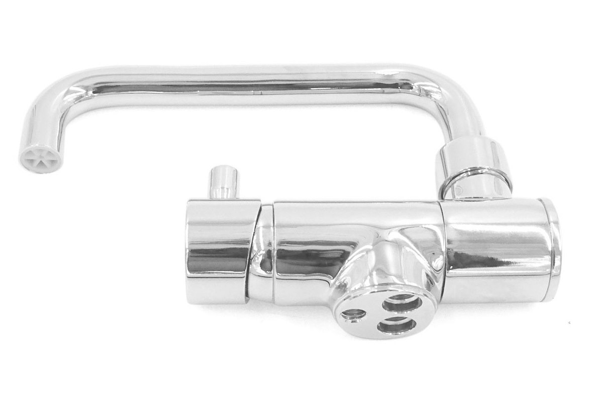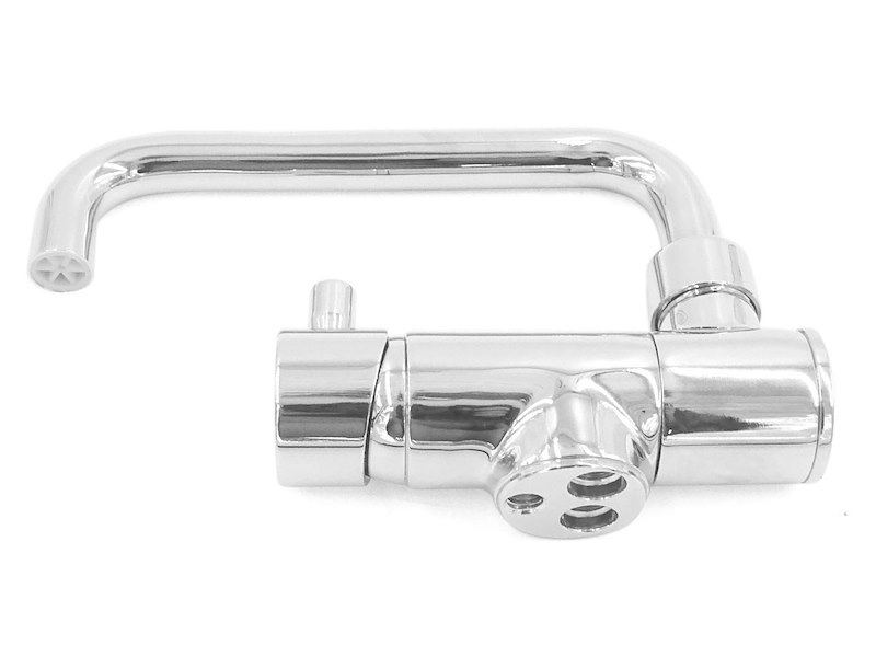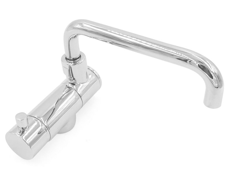 Rubinetto miscelatore con canna orientabile ed abbattibile. Fabbricato in ottone cromato. Altezza corpo chiuso 41 mm. Maniglia destra. Mixer in ceramica. Attacchi 2 x 1/2" femmina.