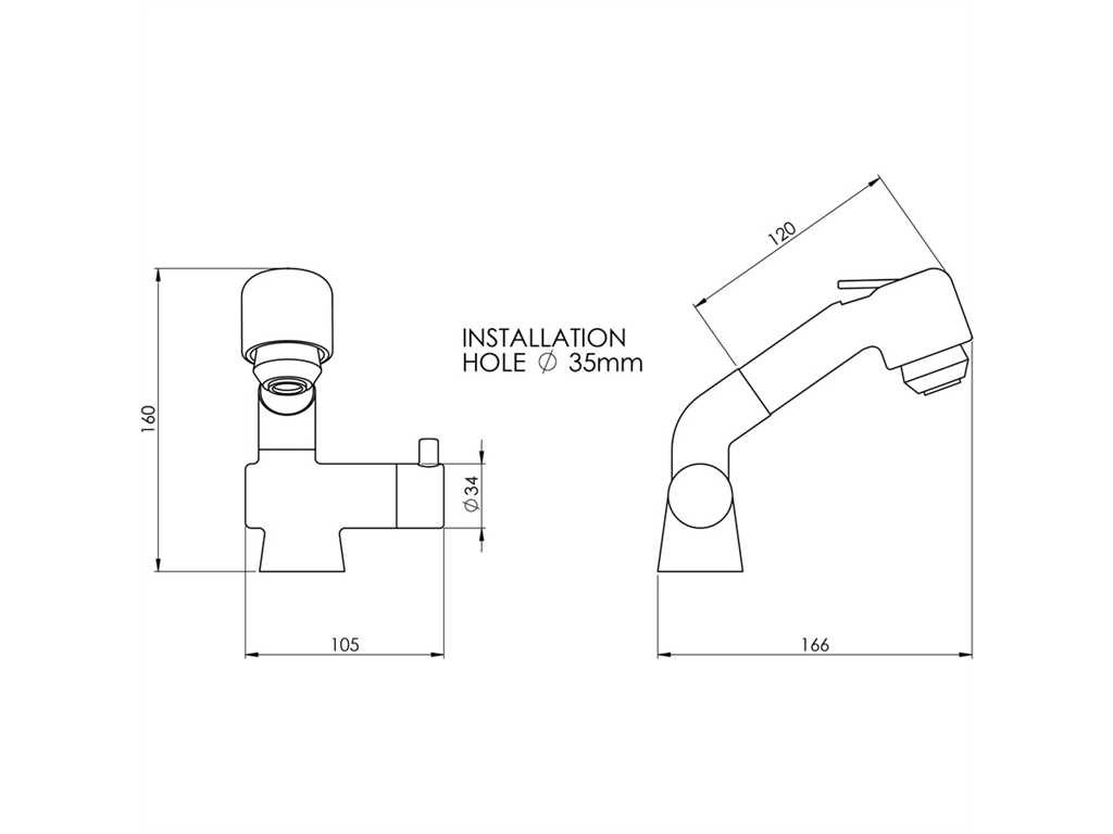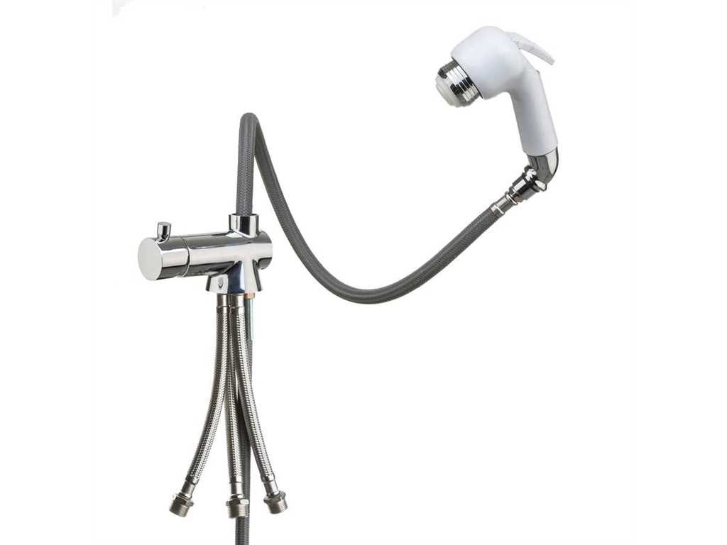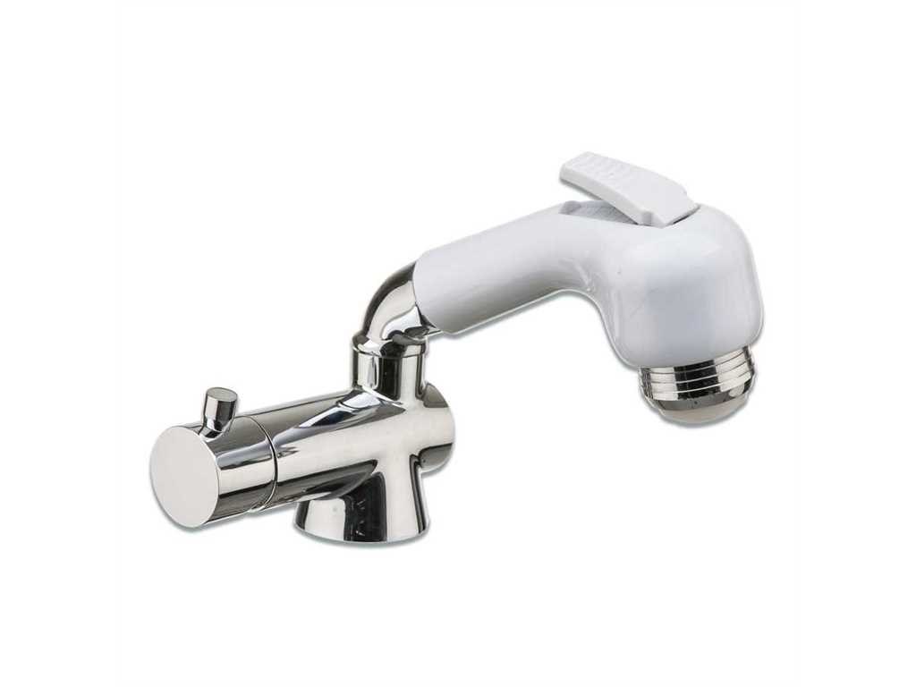 Miscelatore monocomando con doccetta estraibile. La doccetta emette due diversi getti di acqua, stretto o largo, semplicemente tirando verso l'esterno la ghiera cromata. La doccia può rimanere aperta alzando la levetta verso l'alto. Raccordi al miscelatore 3/8 maschio.