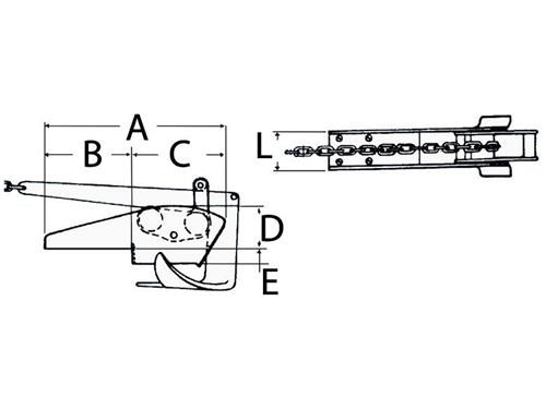 Musone di prua basculante barca in lega leggera anodizzata . Adatto per ancore tipo Danforth, Bruce, Trefoil, Cqr.... .