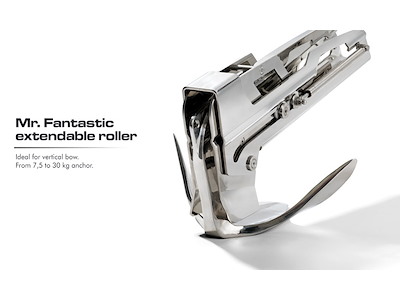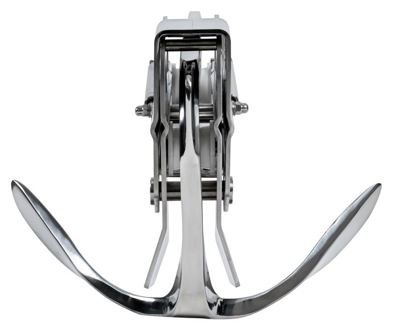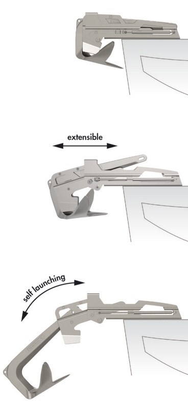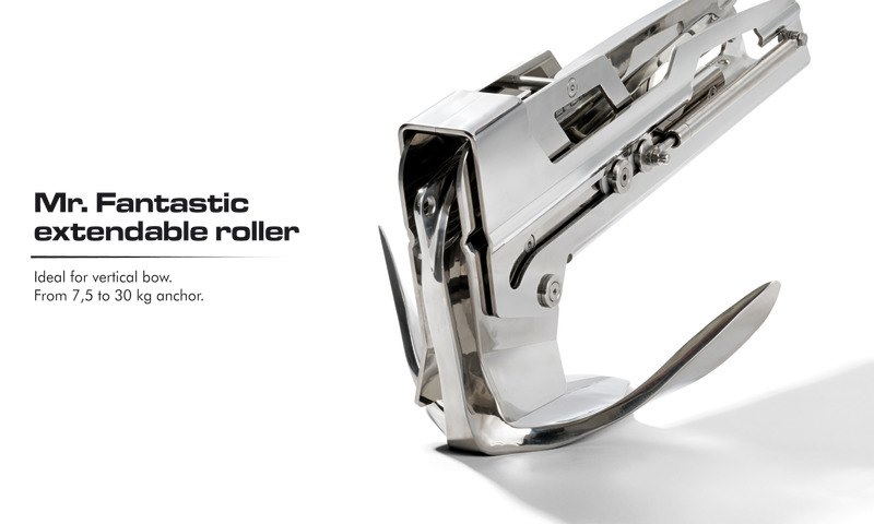 Musone realizzato in acciaio inox lucidato a specchio, ideale per ancora Trefoil o similari. Il musone è dotato di un innovativo sistema con molle a gas che permette all'ancora di allontanarsi dalla prua prima di essere calata. Contemporaneamente un movimento basculante permette la caduta automatica dell'ancora, mantenendo una distanza di sicurezza dalla prua. Il musone ha una corsa di estensione fino a 22 cm, principalmente adatto per le prue verticali. La sua linea leggera e sportiva si adatta bene alla livrea dello scafo e la sua struttura in acciaio è studiata per alti carichi di tenuta.