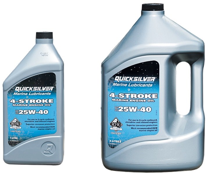 Olio Quicksilver per motori entrobordo 4 Tempi è una formulazione esclusiva appositamente concepita per fornire lubrificazione e protezione anti corrosiva, ottimali ai motori marini a 4 tempi. Questo olio esclusivo 25W-40 ha più viscosità, non contiente agenti potenziatori della viscosità che potrebbero causarne la disgregazione fornendo di conseguenza minore protezione al motore. La maggior concentrazione di detergenti, anti-ossidanti e di agenti anti-logorio ed anti-corrosivi, fornisce una protezione superiore a quella della maggior parte degli olii standard per motori di automobili a 4 tempi. L'uso continuo di questo olio riduce il logorio, il prr-grippaggio e le abrasioni dei componenti interni del motore. Mantiene puliti i pistoni ed impedisce il grippaggio delle fasce elastiche e protegge dalla corrosione le parti interne del motore. Soddisfa e supera i requisiti di manutenzione API per le classi SJ, CF-2 e CH-4 . Gli addittivi multifunzionali di questo olio garantiscono prestazioni di grado " nautico " e forniscono protezione come da garanzia per tutti i motori Mercury e Mercruiser .
