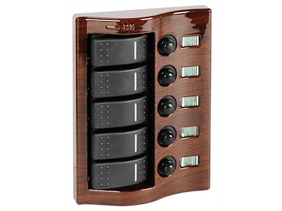 Pannello elettrico con interruttori carenati - cubicato mogano - 5 interruttori -