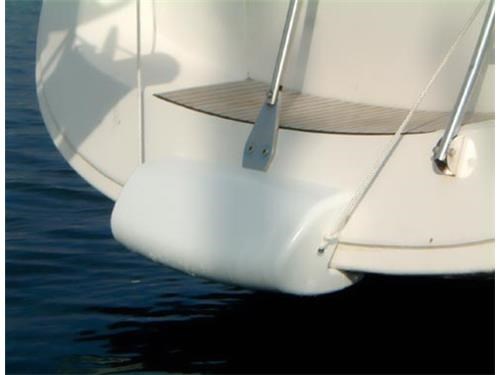 Parapoppa Ocean Match 80 . Si accoppia perfettamente ad ogni tipo di poppa da 75° a 90°. Costruzione : pieno in poliuretano integrale morbido, garantisce il massimo assorbimento agli urti più violenti. La particolare forma ed un foro passante con boccole in nylon per il passaggio della cima assicurano il fissaggio e la tenuta su ogni barca. Modello depositato - CAD Design .