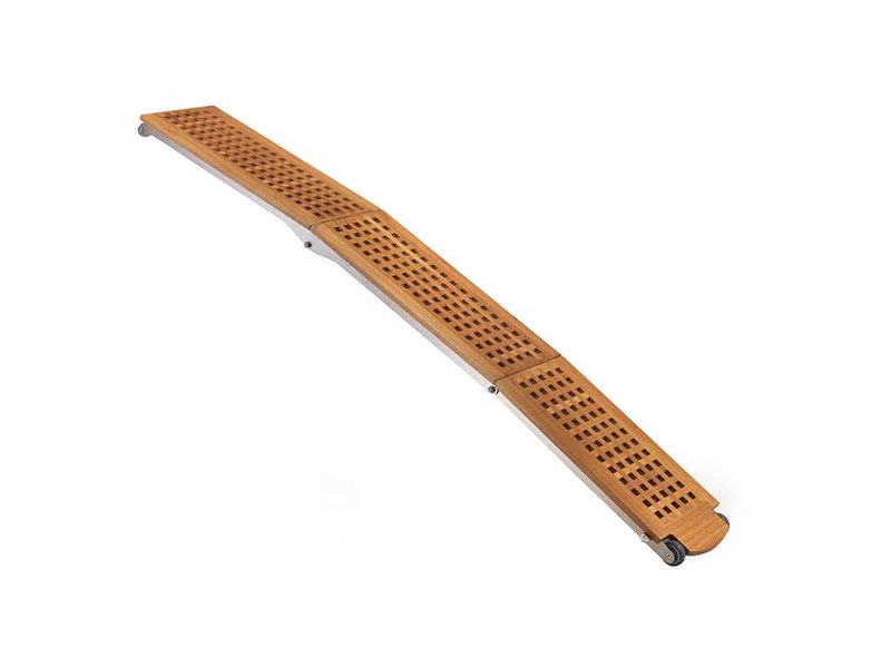 Passerella pieghevole per barca modello "Tris" . Pieghevole in 3 parti, permette una volta chiusa di avere delle dimensioni ridotte per poterla riporre agevolemente. Struttura in acciaio inox e legno carabottino.