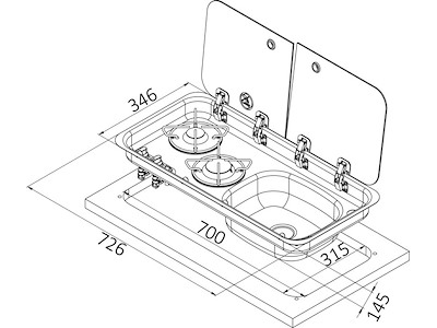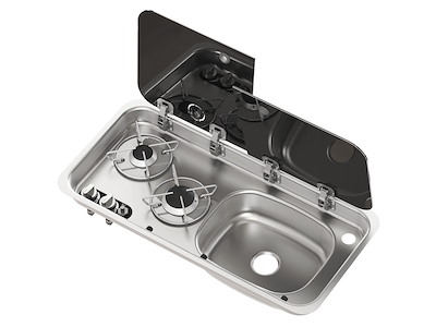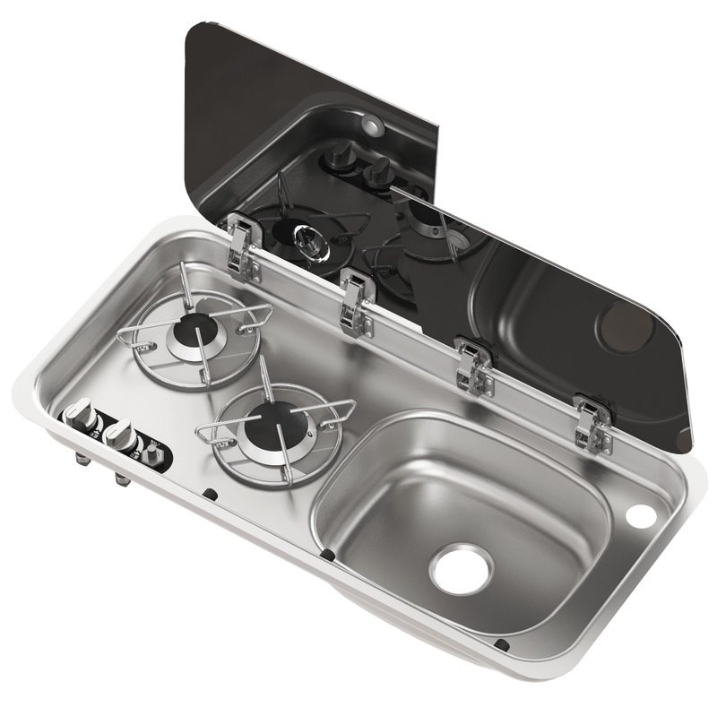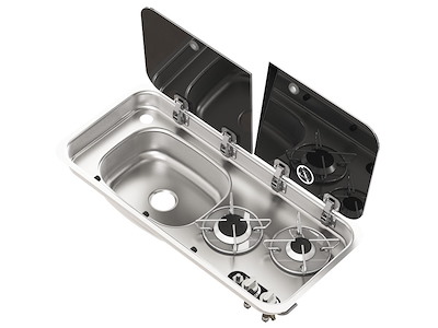 Piano Cottura 2 Fuochi + Lavello DX con Miscelatore