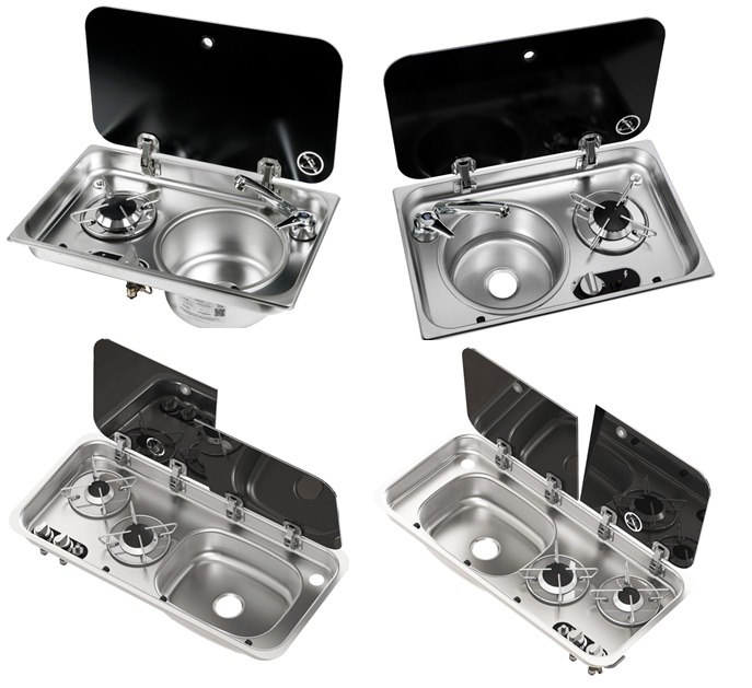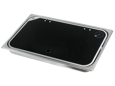 Piani cottura da incasso in acciaio inox con coperchio in vetro temperato fumé.
