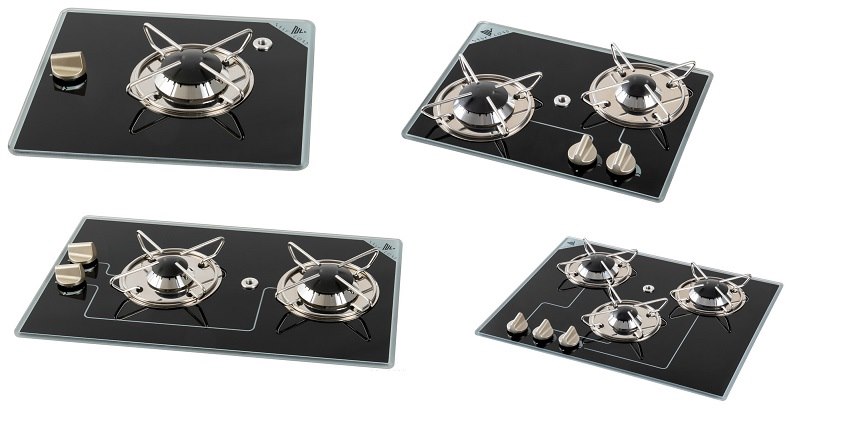 Piano a gas in vetro cristallo. Completo di termocoppia di sicurezza.