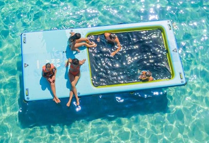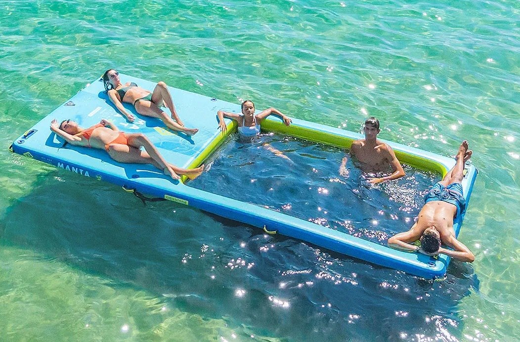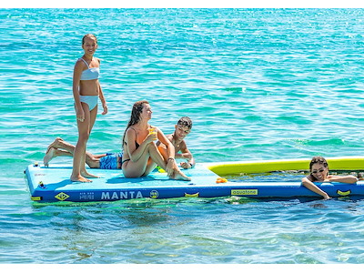 La MANTA è una piattaforma galleggiante di grandi dimensioni, ideale per ospitare fino a 8 persone. Offre un’ampia superficie stabile e versatile, perfetta per relax, giochi o feste in mare.