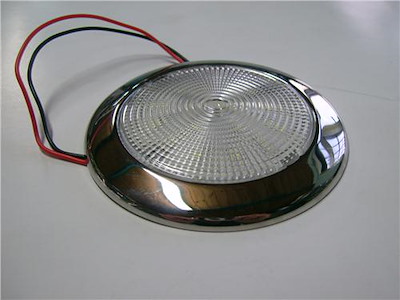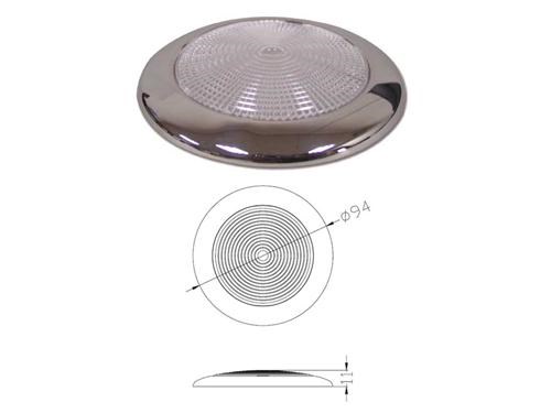 Consumo 1 watt, resa luminosa 10 watt. Diametro esterno 94 m. - Spessore solo 11 mm. . Alimentazione 12 volt.