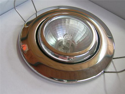 Lente in vetro, parabola dicroica orientabile. Completa di lampadina 12 V - 20 W.