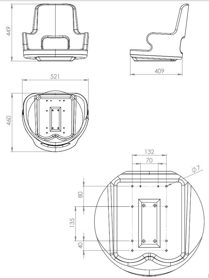 Poltroncina di guida modello "Captain" . Fabbricata in polietilene antiurto di colore bianco. Completa di viti inox per l'applicazione alle basi.