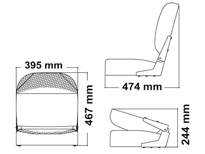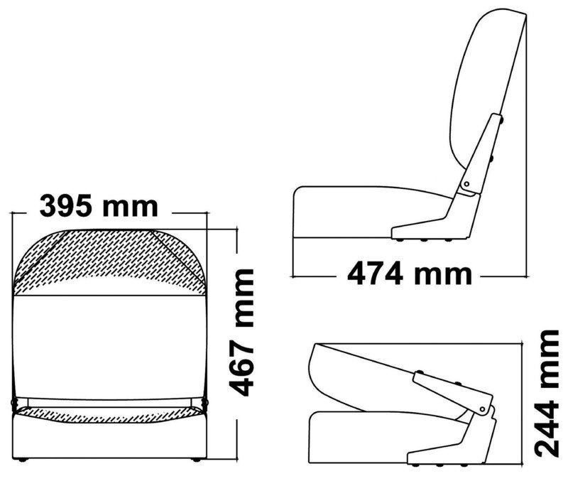 Poltroncina con schienale ribaltabile. Cuscino in vinile. Cerniere in alluminio.