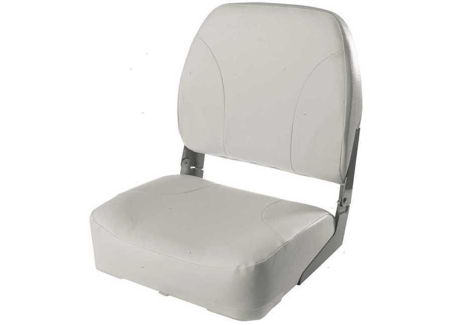 Poltroncina di guida con schienale ripiegabile . Sedile imbottito, rivestito in Skay marino .