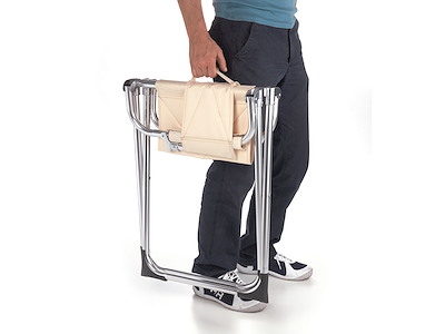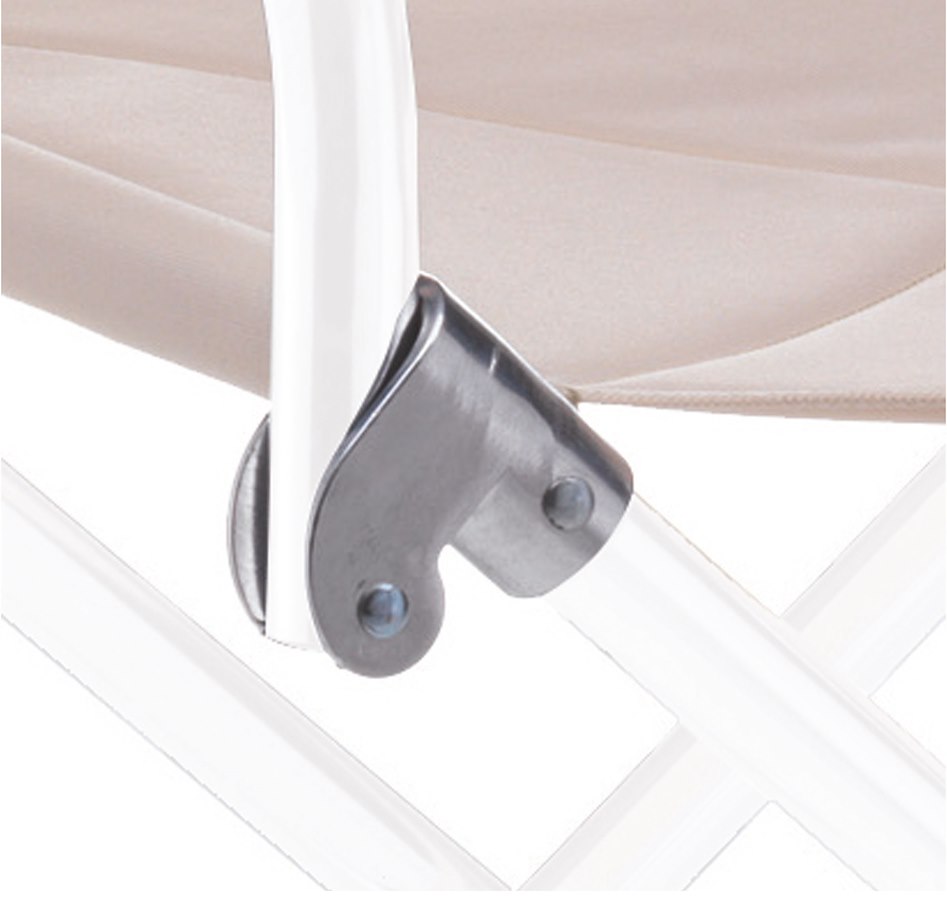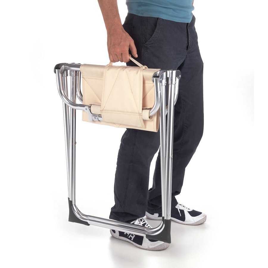 Poltroncina modello " Venus ". Fabbricata in alluminio anodizzato con braccioli, seduta e schienale confortevoli, imbottiti in materiale espanso. Schienale, seduta e braccioli in tessuto ad alta resistenza. Si richiude con una semplicissima manovra ed una volta chiusa occupa un minimo ingombro. Comoda maniglia per il trasporto. Rifiniture molto eleganti e curate.