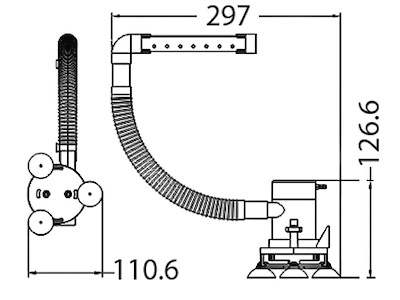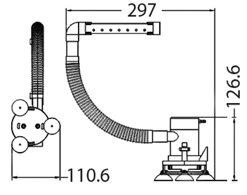 Fissaggio nella vasca tramite ventosa. Completa di tubo aeratore da fissare con ventose alla parete della vasca. Alimentazione 12 volt - Consumo 1 amper - Portata 22 l/min. - Prevalenza 3 metri.
