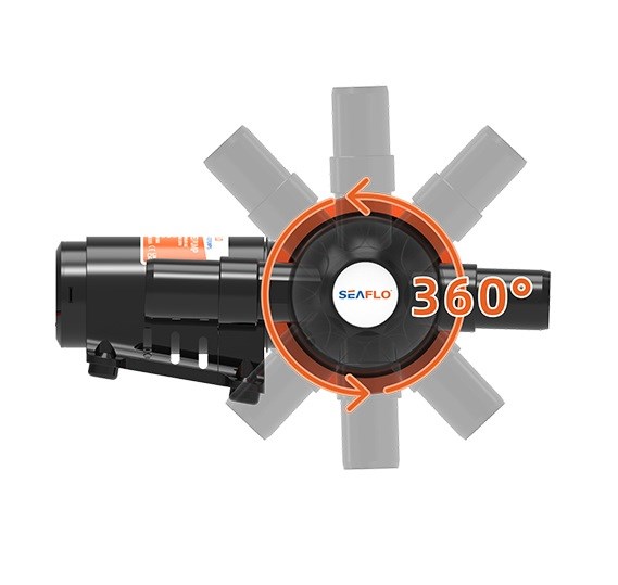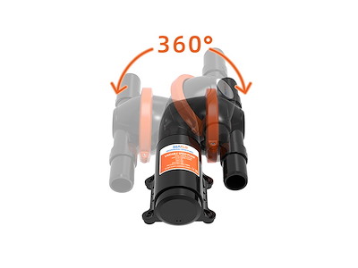 La testa della pompa è orientabile a 360° grazie all’anello di serraggio regolabile, consentendo installazioni flessibili in qualsiasi posizione. Le porte multi-posizione facilitano il montaggio anche in impianti complessi o spazi confinati.