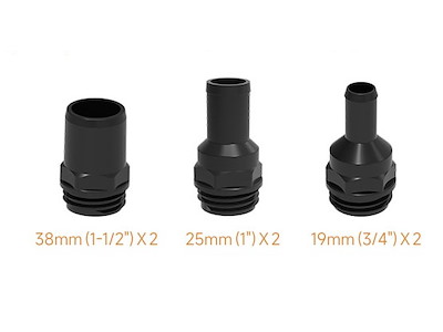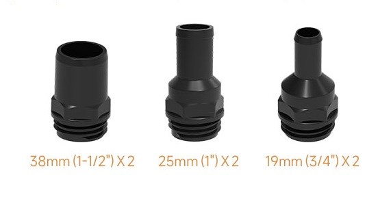 - Tre tipi di raccordi per adattarsi a diversi impianti: 38 mm (1-1/2") × 2 + 25 mm (1") × 2 + 19 mm (3/4") × 2