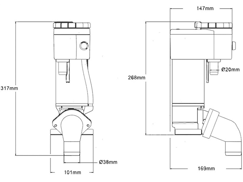 Kit elettrico verticale universale per trasformare un WC manuale in elettrico. E' un'ottima soluzione per migliorare il comfort e la praticità a bordo di imbarcazioni, camper o altri contesti in cui sono comuni WC manuali.