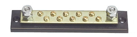 Porta terminali elettrici . Barra di connessione in rame stagnato nichelato, base in ABS, contatti in acciaio inox .