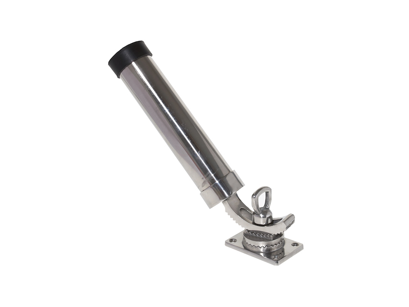 Portacanne barca a cremagliera orientabile. Fissaggio in piano, complete di boccala in gomma.