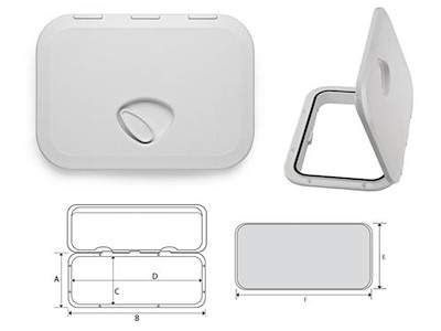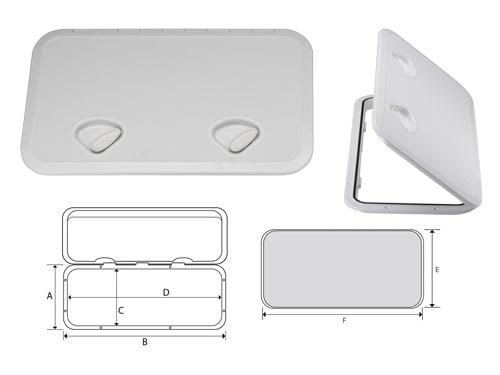 Portello calpestabile impermiabile in ABS. Alta resistenza ai raggi UV . Coperchio completamente carenato, nasconde totalmente il telaio e quindi le viti di fissaggio. Cerniere completamente a filo. Apertura a 180°. Montaggio a filo, si possono usare come portelli per gavoni o come portelli di ripostigli e paretie.