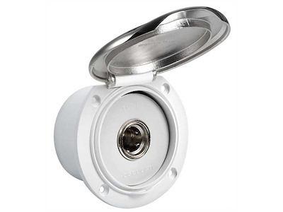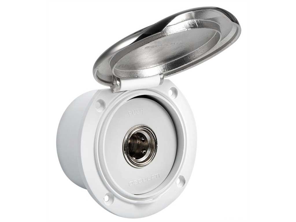 Si collega alla rete idrica di bordo acqua dolce o salata e mantiene in pressione la linea. Il tubo di lavaggio si innesta a scatto nella presa e fa automaticamente partire la pompa ( se dotata di pressostato ). Box in ABS resistente agli UV, meccanismo in ottone cromato.