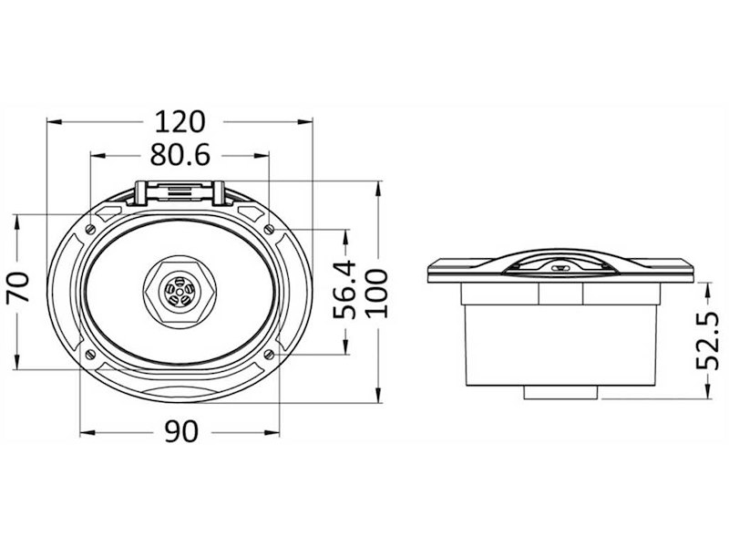 Foro incasso 90 x 70 mm, sporgenza interna 52,5 mm.