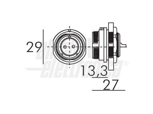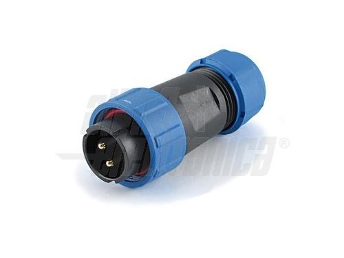 Prese e Spine volanti o ad incasso a due poli stagne. Corpo in nylon e contatti di lega di rame dorato . Contatti da saldare . Corredate di cappuccio stagno . Maschio e femmina si uniscono con la sicurezza della ghiera a vite .