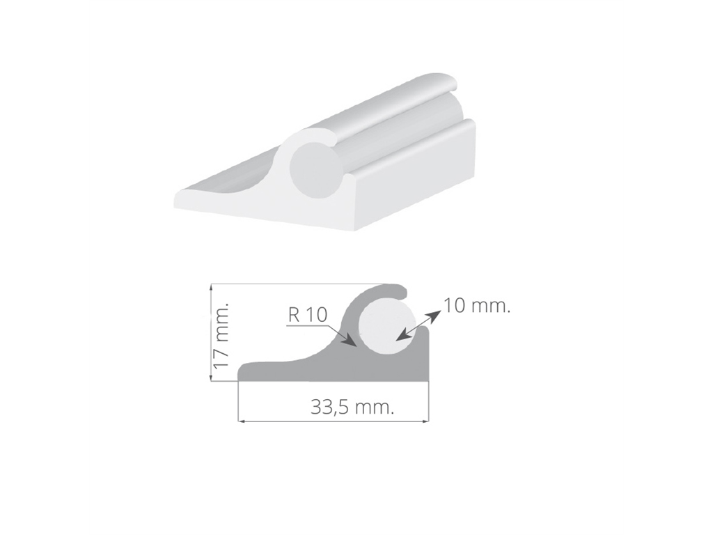 Profilo a relinga in PVC semirigido bianco per fissaggio cuscinerie prendisole.