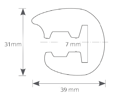 Profilo bottazzo in PVC per imbarcazioni con assemblaggio a battuta piana, necessita di supporto base a T ( fornito separatamente ) . Altezza profilo 31 mm. .
