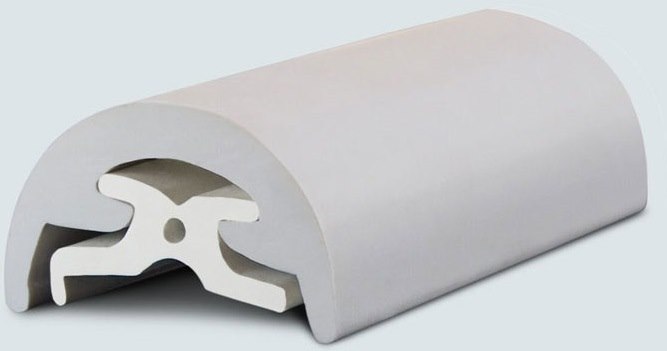 Profilo parabordo BREVETTATO in PVC per accappiamenti scatolati . La peculiarità di questo profilo è quella di poter essere applicato a freddo in pochi, semplici e veloci passaggi. Infatti il montaggio si ottiene semplicemente a pressione senza dover scaldare il profilo parabordo . Altezza parabordo 80 mm. . Il supporto (binario) viene venduto separatamente .