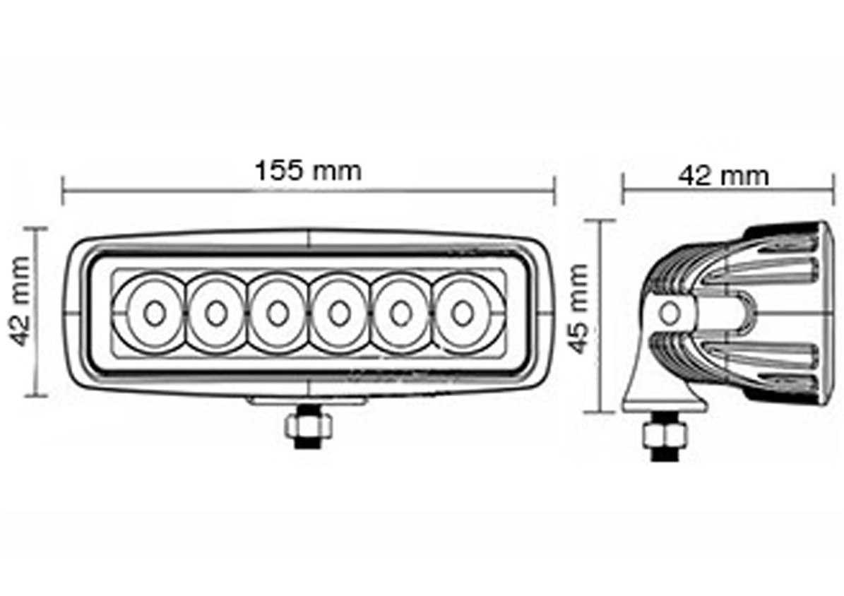 Fonte luminosa 6 LED x 3 WATT, tensione operativa 10-30VDC, temperatura colore 6000K, potenza 18 W, 1200 Lumen.