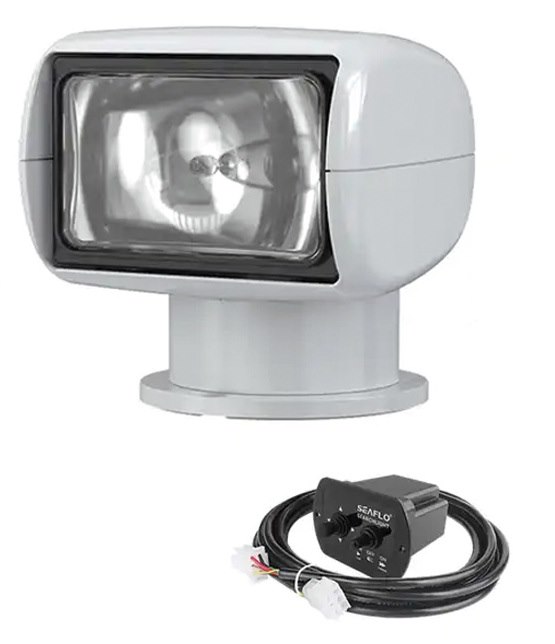 Proiettore motorizzato Seaflo alogeno orientabile nautico a 12V con pannello remoto.