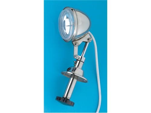 Proiettore in acciaio inox, con pomolo di regolazione dalla cabina. Fabbricato interamente in acciaio inox, con parabola sigillata alogena da 55 Watt.