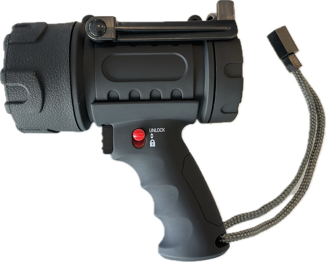 Proiettore Cree Led con batteria al Litio ricaricabile tramite cavetto usb fornito in dotazione. Proiettore piccolo compatto maneggevole ma dalla elevata potenza. Portata 380 mt. Lumen 1250. Grado di protezione IP67. Dimensioni 145 x 165 mm. .