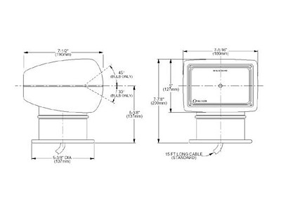Proiettore nautico Alogeno Jabsco 135 SL con comando a distanza, studiato per le imbarcazioni da 7-15 metri. Il faro 135SL permette una deflessione di 75° in verticale, tramite il solo movimento della lampada, e una rotazione di 320° in orizzontale. La lampada alogena della potenza di 100.000 candele è completamente sigillata. Queste caratteristiche sono contenute in un'unità porgettata per una facile installazione e manutenzione, costruita interamente con materiali anti-corrosione e di lunga durata. L'unità di comando, con interruttore direzionale ad otto vie ed interruttore ON/OFF, può essere sistemata convenientemente ovunque a bordo. Essa viene fornita con un cavo, già assemblato dei collegamenti, della lunghezza di 4,5 metri.
