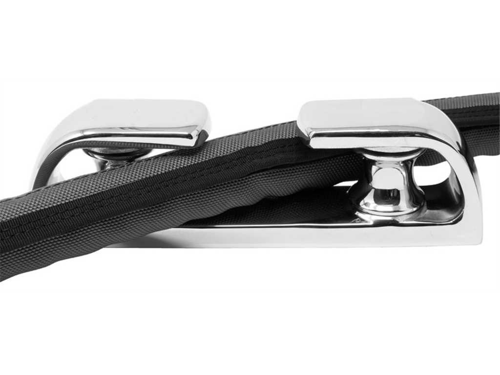 Fissaggio con velcro e nastri anti-scorrimento. Finitura curata.