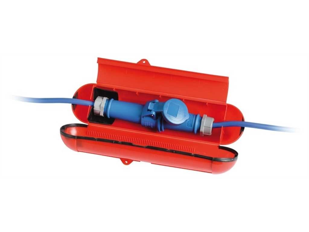 Costruita in plastica antiurto, rende impermeabile la vostra connessione elettrica. Completa di lucchetto.