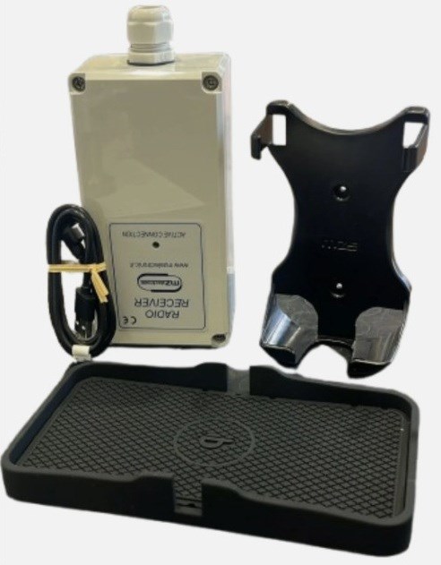 Fornito con tappetino per ricarica wireless e basetta per fissaggio a parete.
