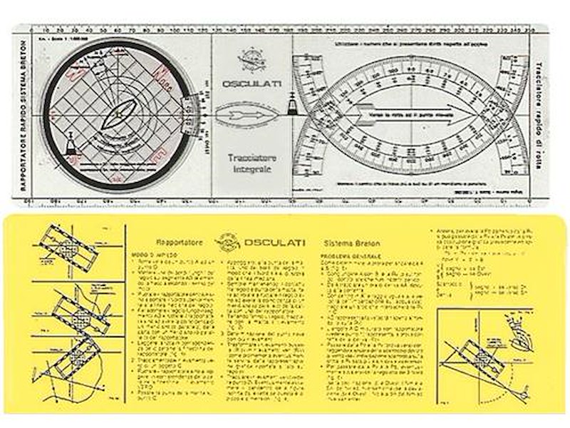 Racchiude in un solo strumento sia il rapportatore Bretone, che il rapportatore rapido sistema “Jean CRAS”. Completo di custodia e di istruzioni. Permette di misurare distanze, correggere declinazioni, trasportare un punto rilevato, tracciare il rilevamento vero di un rilevamento costiero, rotte in base alla graduazione della bussola ecc.