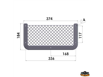 Fabbricata con rete di contenimento e filetto superiore in corda elastica. Provvista di cornice coprifori in plastica e tappi coprivite.