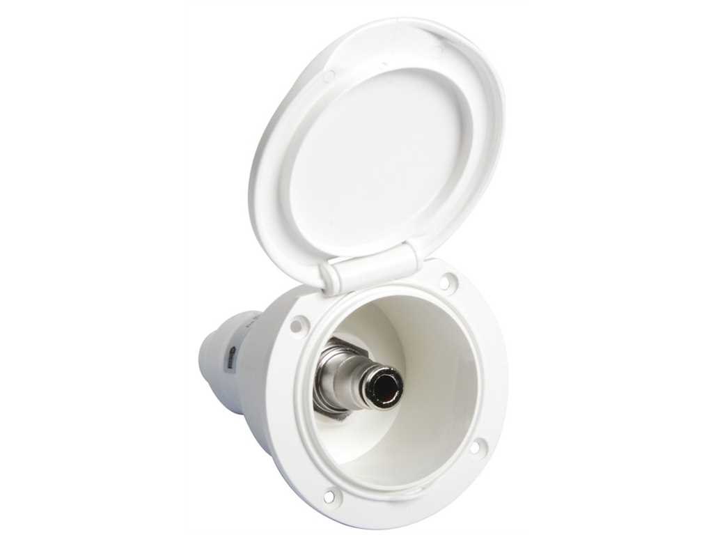 Nel caso si voglia utilizzare l’acqua di banchina, riduce la pressione a 3 bar per non danneggiare le tubazioni. Il tubo acqua di banchina si innesta a scatto tramite un raccordo tipo giardinaggio (vedi codice 3322). Filetto di uscita 3/4" maschio.