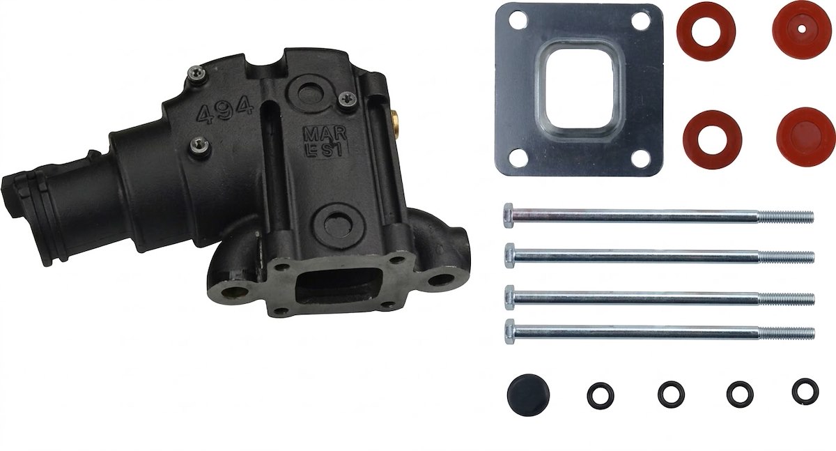 Gomito di scarico per motori Mercruiser e GM. Modello alto + 20,5 cm. per motori GM V6 & V8 262, 305, 350, 377, 385, 6.2L MPI (2002+). Compatibile con codice originale Mercruiser 77235A8 - 864591T02.