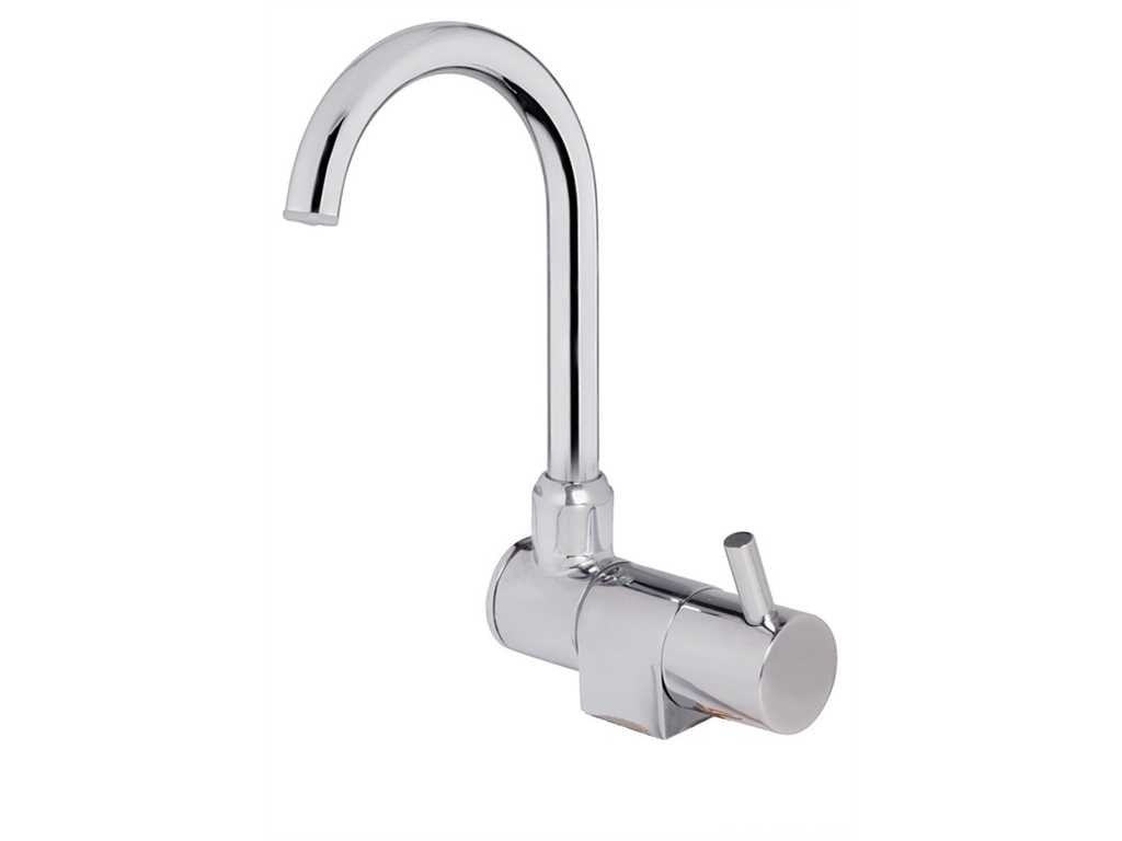 Rubinetto con canna ruotante ed abbattibile modello Slim. Costruito in ottone cromato. Può essere montato all'interno del lavello al fine di avere il piano completamente liscio.